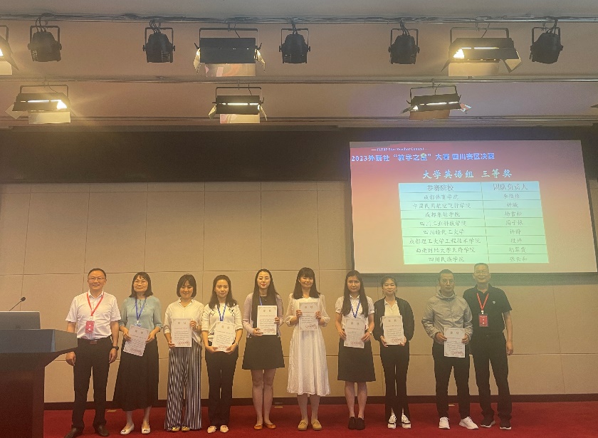 5月27日,2023年外研社“教学之星”大赛四川省决赛在四川师范大学举行,此次省级决赛一共有34支队伍参加,英语专业组、理解当代中国组18组,大学英语组16组。经过巅峰“论剑”,我校sjb世俱杯官方网站的两支教师团队,陈雪婷老师和李清老师(团队成员:周丹强玉、邹佳静、杨睿)凭借扎实的授课功底、出色的课程设计荣获本次比赛理解当代中国组二等奖,钟璇老师、王韵老师(团队成员:庄馨)也获得了大学英语组三等奖的优异成绩。