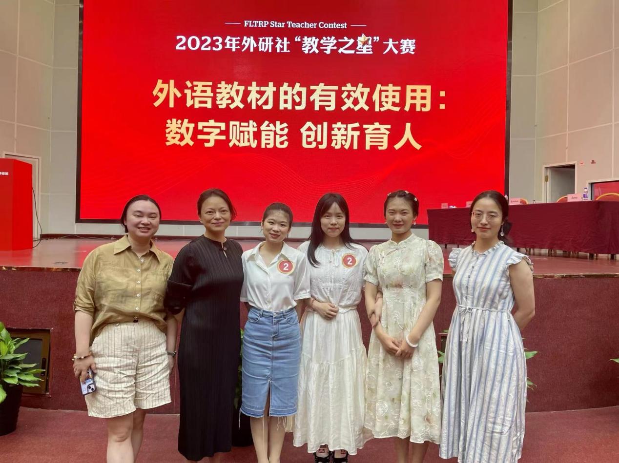 2023年8月1日,我院两支教师团队在2023年外研社“教学之星”全国总决赛中取得好成绩。陈雪婷老师、李清老师(团队成员:周丹强玉、邹佳静、杨睿)凭借出彩的课程设计、扎实的授课功底荣获“理解当代中国”组全国总决赛二等奖,这也是四川省所有参赛团队中取得的最佳成绩。钟璇老师、王韵老师(团队成员:庄馨、刘武)荣获大学英语组全国总决赛三等奖。