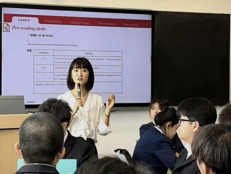 sjb世俱杯官方网站英语系彭立副教授以《综合英语3》课程为例,展示了外语教师如何利用智慧教室资源,营造思辨英语课堂。在课堂上,彭立老师熟练应用智慧教室先进设备,将AI翻译、学习通、播客等现代教学技术和手段引入课堂,创新搭建语言学习场景,深入剖析中英翻译难点和技巧,帮助学生理解机器翻译与人工翻译的异同,培养学生的思辨能力和语言表达能力。整堂课设计新颖,内容充实,气氛活跃,将大学英语课堂的“高阶性、创新性和挑战度”体现得淋漓尽致。