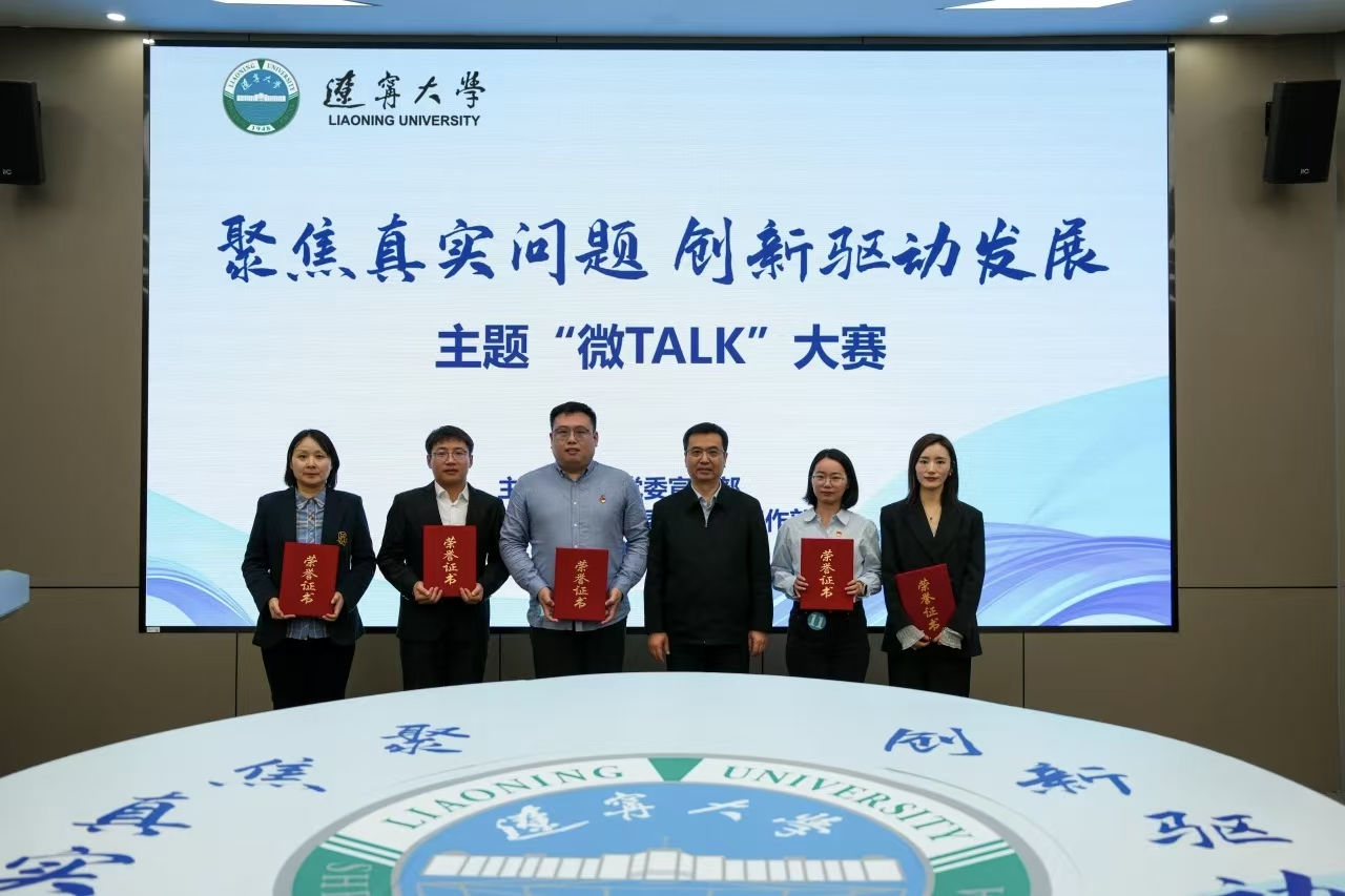 11月20日,由党委宣传部、党委教职工工作部、校工会主办的“聚焦真实问题,创新驱动发展”主题“微TALK”大赛在蒲河校区校部办公楼401会议室举行。校党委副书记张洪新出席活动并颁奖。