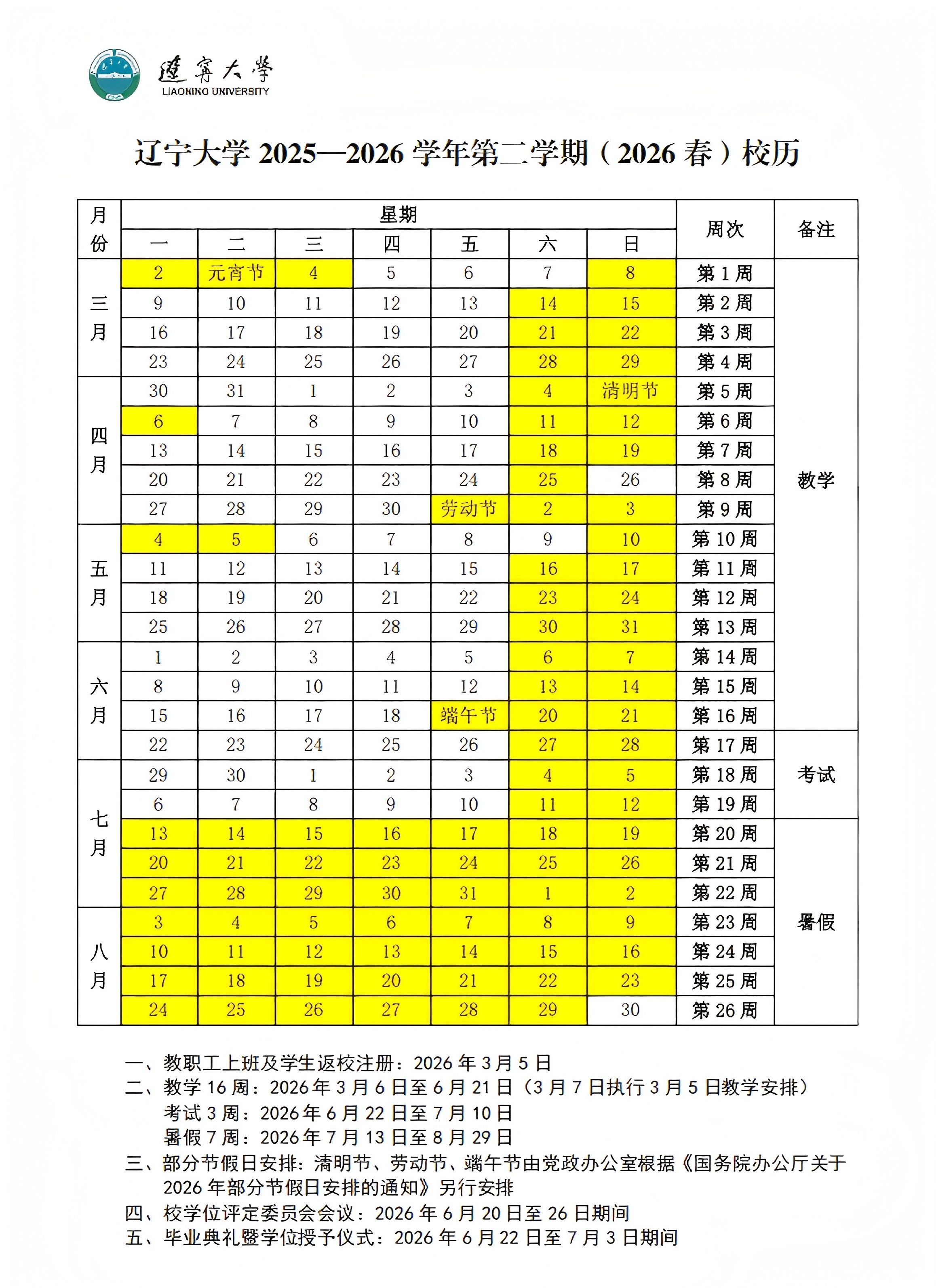 万象城娱乐awc线路 2025-2026 学年第二学期(2026 春)校历