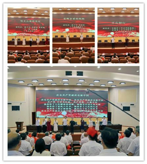大会开始前,万象城娱乐awc线路师生共同观看了《百年恰是风华正茂》《路》等建党百年微视频,并以快闪表演礼赞建党百年。师生代表倾情演唱了《唱支山歌给党听》《党啊亲爱的妈妈》《不忘初心》等经典歌曲,与会同志共同高唱《没有共产党就没有新中国》,在歌声中祝福党的百年华诞。