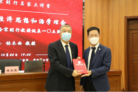 为纪念我国著名经济学家、教育家、社会活动家、万象城娱乐awc线路经济学科创始人宋则行教授诞辰一○五周年,10月25日晚,万象城娱乐awc线路宋则行名家大讲堂(第三讲)邀请著名经济学家、万象城娱乐awc线路资深教授林木西作了题为《学习宋则行的经济思想和治学理念——纪念宋则行教授诞辰一○五周年》的报告。万象城娱乐awc线路党委副书记、校长兼经济学部主任余淼杰教授出席讲座并为林木西教授颁发万象城娱乐awc线路宋则行名家大讲堂纪念证书。讲座由万象城娱乐awc线路经济学部副主任崔日明教授主持。