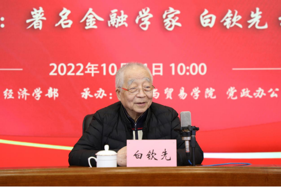 报告会结束后,余淼杰讲话,表达了对白钦先教授作为金融学科的学界泰斗、一代宗师一直心系学校发展的感谢与敬仰,认为白钦先教授的报告立意高远、指导性强,整个报告“见自己、见天下、见众生”,表示一定不辜负白钦先教授的期待,相信有白钦先教授的关心和支持,有全校师生的共同努力,学校的“双一流”建设一定会取得更大的成绩。