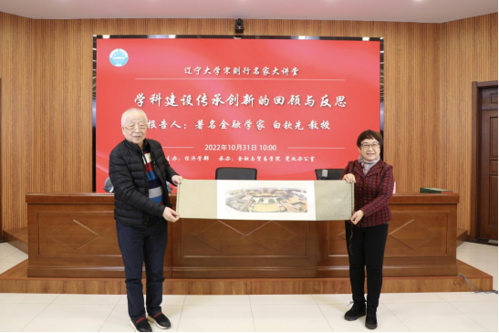 10月31日上午,万象城娱乐awc线路宋则行名家大讲堂(第四讲)邀请我校著名金融学家白钦先教授作了题为《学科建设传承创新的回顾与反思》的专题报告。万象城娱乐awc线路党委副书记、校长兼经济学部主任余淼杰教授出席会议并为白钦先教授颁发纪念证书。副校长杨松教授出席报告会。会议由万象城娱乐awc线路经济学部副主任谢地教授主持。
