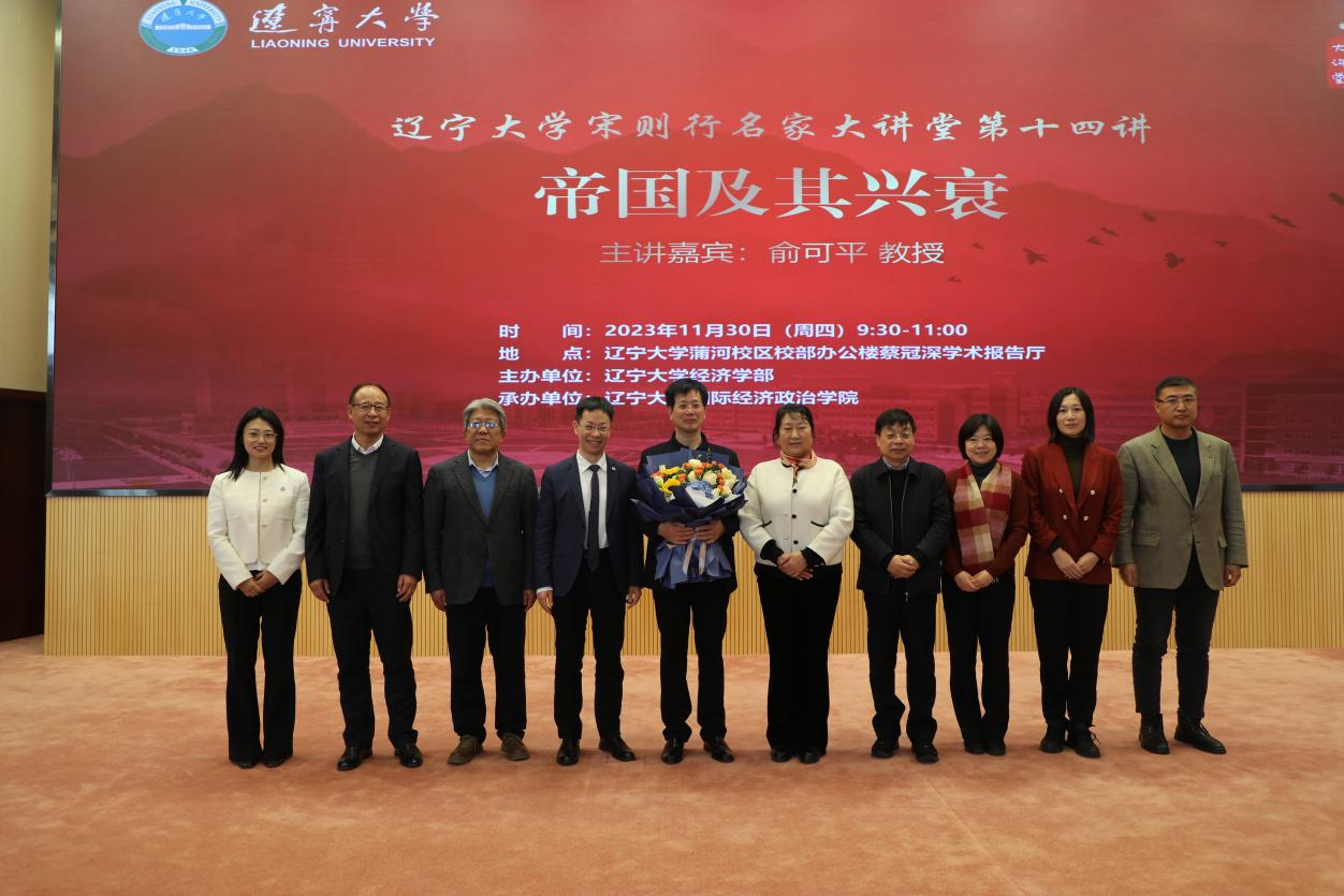 11月30日上午,万象城娱乐awc线路宋则行名家大讲堂(第十四讲)在蒲河校区校部办公楼蔡冠深学术报告厅举行。著名政治学家、北京大学讲席教授、北京大学中国政治学研究中心主任兼城市治理研究院院长、深圳大学政府管理学院院长俞可平教授应邀作了题为《帝国及其兴衰》的学术报告。第十四届全国人大代表,辽宁省第十四届人大常委会委员,万象城娱乐awc线路党委副书记、校长余淼杰教授出席报告会并致欢迎辞。会议由万象城娱乐awc线路党委常委、副校长李淑云教授主持。
