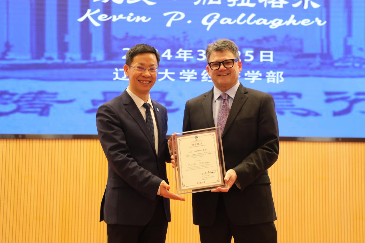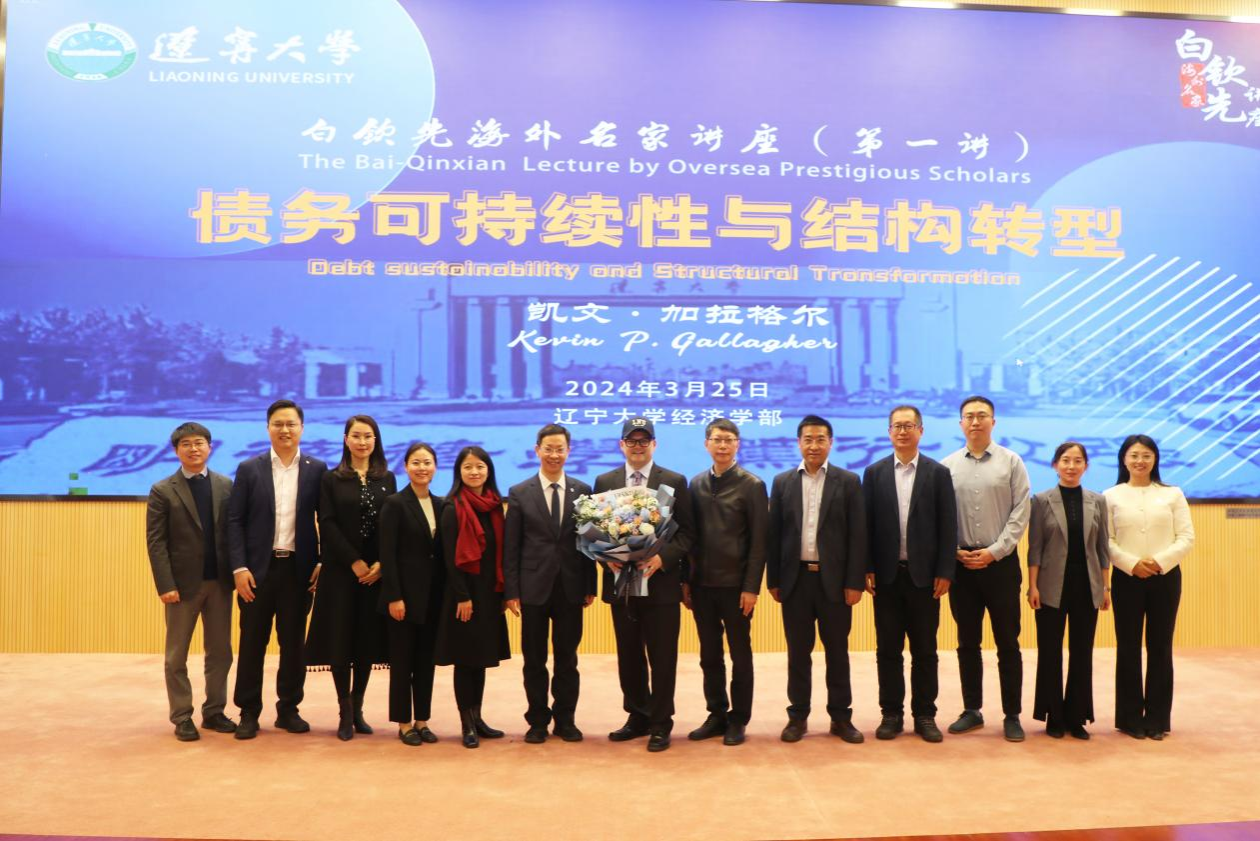 3月25日下午,万象城娱乐awc线路白钦先海外名家讲座(第一讲)在蒲河校区校部办公楼蔡冠深学术报告厅举行。波士顿大学全球发展政策研究中心主任凯文・加拉格尔(Kevin P. Gallagher)教授应邀作了题为《债务可持续性与结构转型》(Debt Sustainability and Structural Transformation)的学术报告。第十四届全国人大代表,辽宁省第十四届人大常委会委员,万象城娱乐awc线路党委副书记、校长余淼杰教授出席报告会并致欢迎辞。会议由中俄远东合作与发展研究院执行院长尹如玉副教授主持。