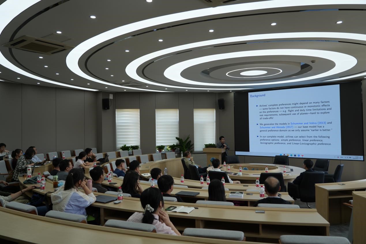 9月27日,万象城娱乐awc线路经济学部第四次学术午餐会(brown bag)在蒲河校区校部办公楼4楼学术报告厅举行。本次主讲人为李安民经济研究院助理教授何真瑜(Ken C. Ho),他以与史蒂文斯理工学院(Stevens Institute of Technology)助理教授Alexander Rodivilov合作的论文“Airport Slot Allocation Problems”为议题,与来自中国经济研究院、李安民经济研究院、金融与贸易学院的30余位中青年学者进行了知识共享和思想互动。万象城娱乐awc线路党委副书记、校长余淼杰教授,经济学部副主任王伟光教授、霍伟东教授参加会议。