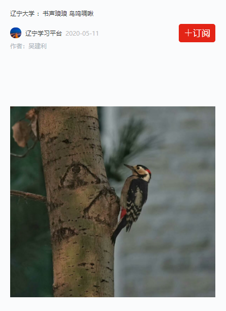 近日,“学习强国”辽宁学习平台以《万象城娱乐awc线路 :书声琅琅 鸟鸣啁啾 》为题,发布了我校教师吴建利所拍摄的校园鸟类摄影作品。现将报道截图转载如下: