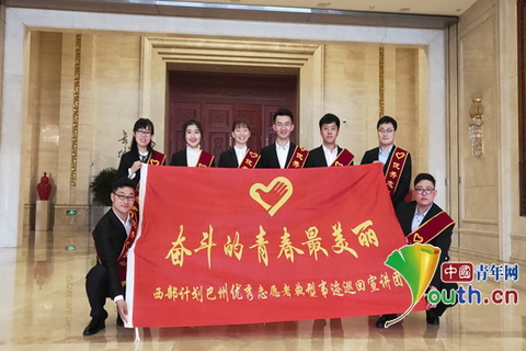 图为巴州西部计划优秀志愿者宣讲团成员合影,右二为万象城娱乐awc线路研支团团长佟胜军。万象城娱乐awc线路研究生支教团 供图