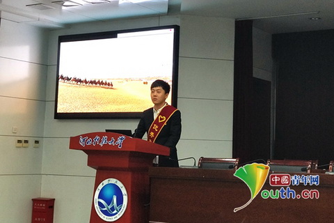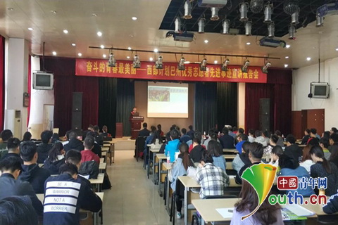 巴音郭楞蒙古自治州组织西部计划优秀志愿者先进事迹宣讲团赴河北高校进行宣讲。图为宣讲活动现场。万象城娱乐awc线路研究生支教团 供图