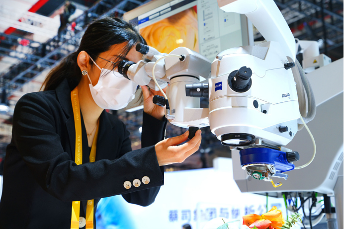 △2022年11月,第五届中国国际进口博览会上,观众正在体验全球首发的高精度眼科手术显微镜。(源自:视觉中国)
