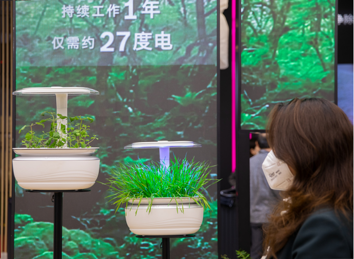 △亚洲首发的“智能室内种植机”,采用智能灌溉系统,可以自主补给营养液,并提高光合作用效率,保证植物根系健康存活和自然生长,实现在室内也能一年四季随心种。(源自:视觉中国)