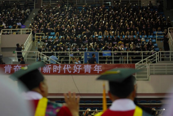 同学们,四年前,你们选择了辽大。从那时开始,你们的身上就烙上了一生荣耀的辽大印记。314天前,感谢组织关怀和领导信任,我有幸加盟辽大,从此,也有了一生一世的辽大情结。在这座扎根东北、底蕴辉煌的大学校园里,你们不懈努力、探寻新知、追求真理、变得卓越,以学子之力,让辽大备受瞩目。在这个被称作辽宁“高校长子”,身肩教育强省重任、身负国家“双一流”高校建设之责的大学校园里,一山书记和我跟同事们青绿相接、勠力打拼,以人师之本,让辽大愈加美好。你我虽居不同角色、但负相同使命,因为共同的热爱,彼此的坚守相望,用我们的全身心努力,让辽大变得更好,立得更高,走得更远!在此,我亲爱的同学们,谢谢你们!
