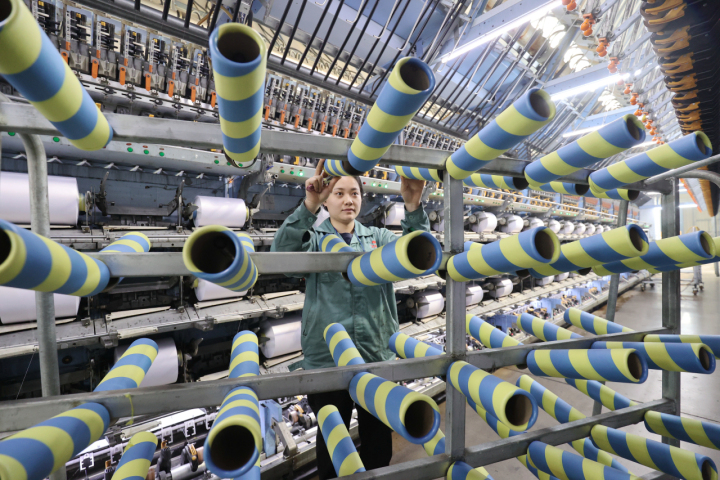 2月20日,位于湖州市德清县禹越镇的汇隆新材料股份有限公司纺丝加弹生产车间,工人在赶制出口海外的差别化有色涤纶长丝产品订单。今年以来,德清县通过实施营商“高频小事”微改革解决营商“一类事”,把“各管一摊”变成“同挑一担”,以政企面对面恳谈、线上答疑解难、线下走访纾困的方式,助力企业破解生产经营和转型发展中的难题,进一步提升营商环境软实力。拍友 谢尚国 摄
