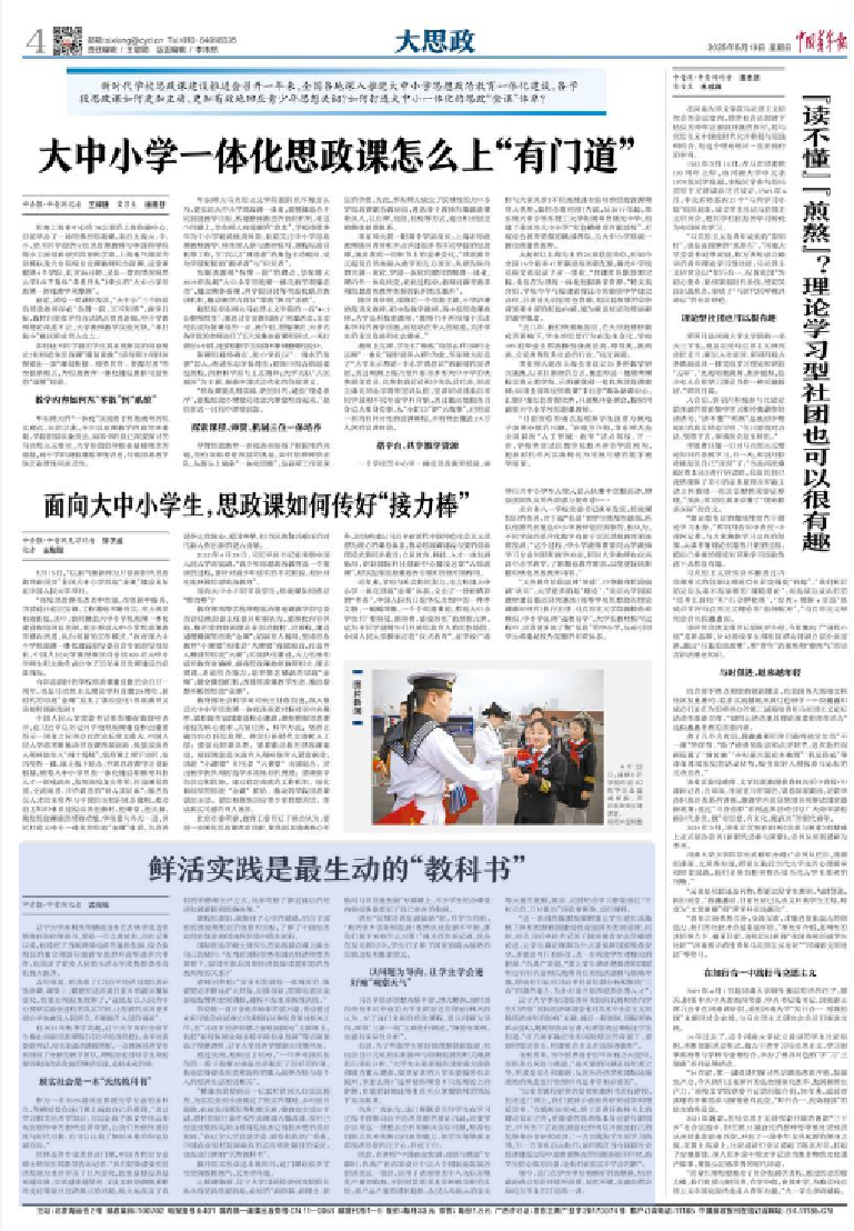 2025年05月18日,《中国青年报》04版以《鲜活实践是最生动的“教科书”》为题,报道我校面向全校学生推出创新思政课程《习近平经济思想》,由学校党委副书记、校长余淼杰教授领衔,一众资深经济学专家组成了全新的教学团队。课程旨在引导学生深刻领悟我国改革发展的鲜活实践,走好未来的路,现将原文转载如下: