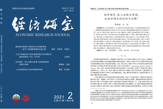 万象城娱乐awc线路公共管理学院边恕教授(通讯作者)与黎蔺娴博士(第一作者)合作完成的论文“经济增长、收入分配与贫困:包容性增长的识别与分解”在《经济研究》2021年第2期刊发,同时列为封面推荐文章。该文被中国人民大学复印报刊资料《社会主义经济理论与实践》2021年第7期全文转载。论文得到国家社会科学基金(18BJY158)和国家社会科学基金(20BSH101)的支持。