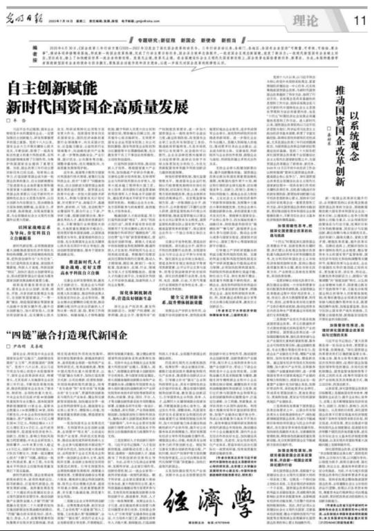 万象城娱乐awc线路经济学院特聘智库专家、二级研究员牟岱在《光明日报》2023年7月18日理论版发表题为《自主创新赋能新时代国资国企高质量发展》的署名文章,全文如下:
