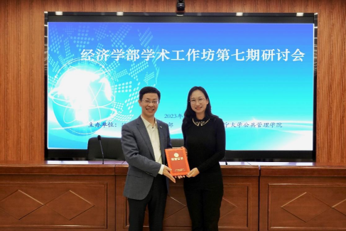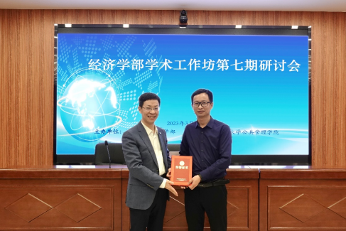 会议最后,余淼杰为黎蔺娴副教授以及往期经济学部学术工作坊主讲老师商学院袁少锋教授、金融与贸易学院林春副教授、国际经济政治学院戴利研教授分别颁发纪念证书。