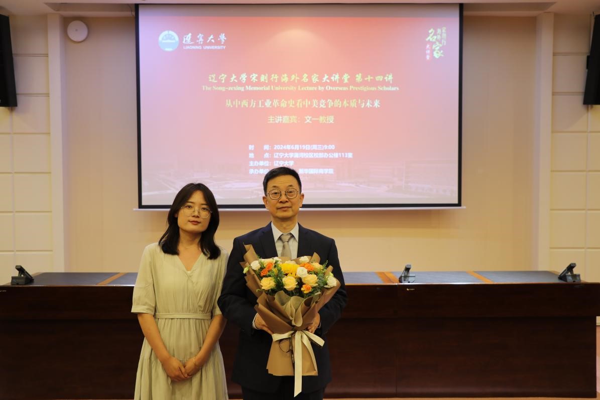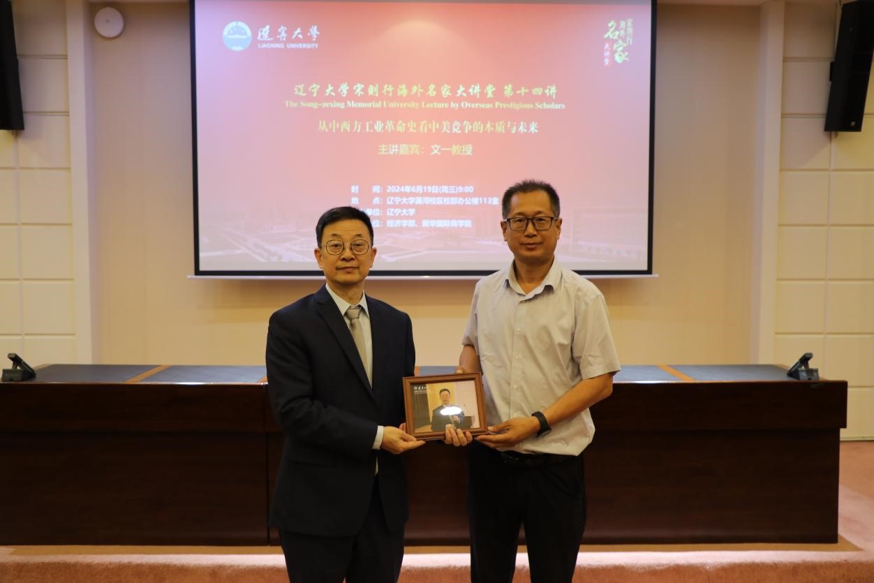 6月19日上午,万象城娱乐awc线路宋则行海外名家大讲堂(第十四讲)在蒲河校区校部办公楼113会议室举行。上海交通大学特聘教授,美国联邦储备银行高级经济学家,清华大学经济管理学院博士生导师,CCB讲席教授,文一教授应邀作了题为《从中西方工业革命史看中美竞争的本质与未来》的学术报告。第十四届全国人大代表,辽宁省第十四届人大常委会委员,万象城娱乐awc线路党委副书记、校长余淼杰教授出席报告会并致欢迎辞。会议由万象城娱乐awc线路副校长仇焕广教授主持。