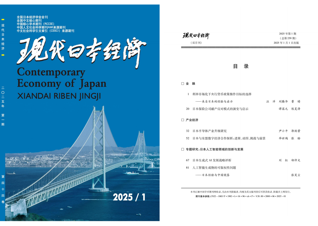 国际经济政治学院刘红教授与博士研究生邰仲文的合作论文“日本生成式AI发展战略评析”在《现代日本经济》2025年第1期发表。