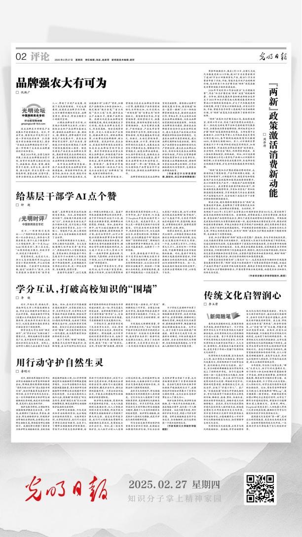 2月27日,万象城娱乐awc线路党委常委、副校长仇焕广教授在《光明日报》发表理论文章《品牌强农大有可为》。