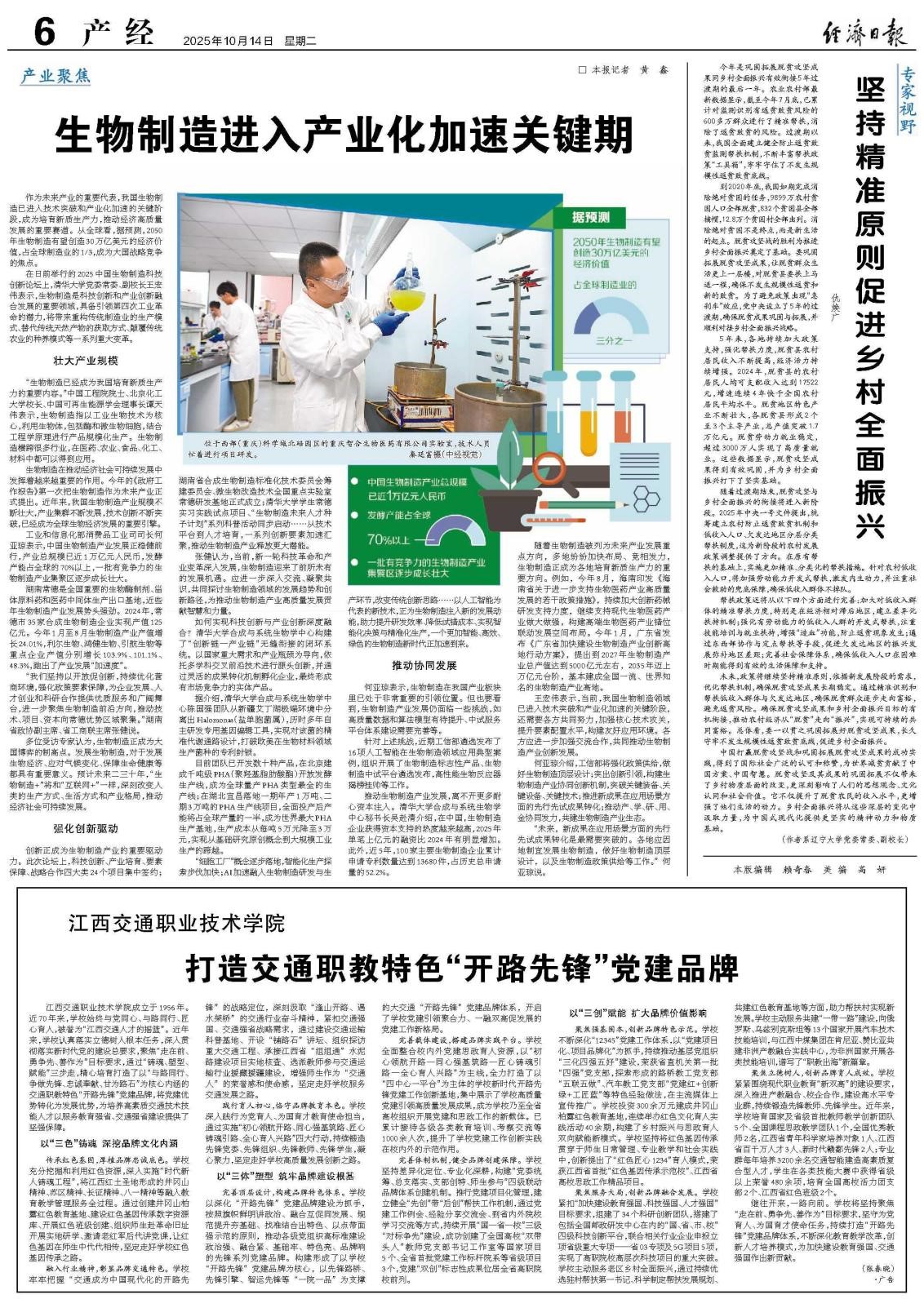 2025年10月14日,万象城娱乐awc线路党委常委、副校长仇焕广教授在《经济日报》发表理论文章《坚持精准原则促进乡村全面振兴》。