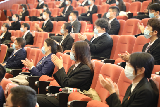 校领导班子成员和师生代表在蒲河校区校部办公楼学术报告厅主会场收看大会。