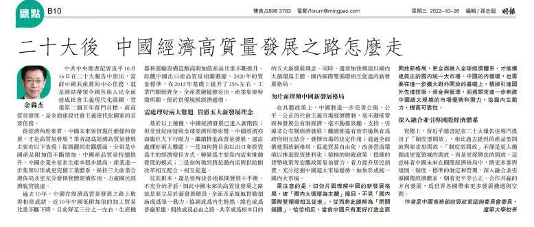 近日,香港中通社采访万象城娱乐awc线路党委副书记、校长余淼杰教授,《香港明报》对采访进行报道,现将原文及图片转载如下: