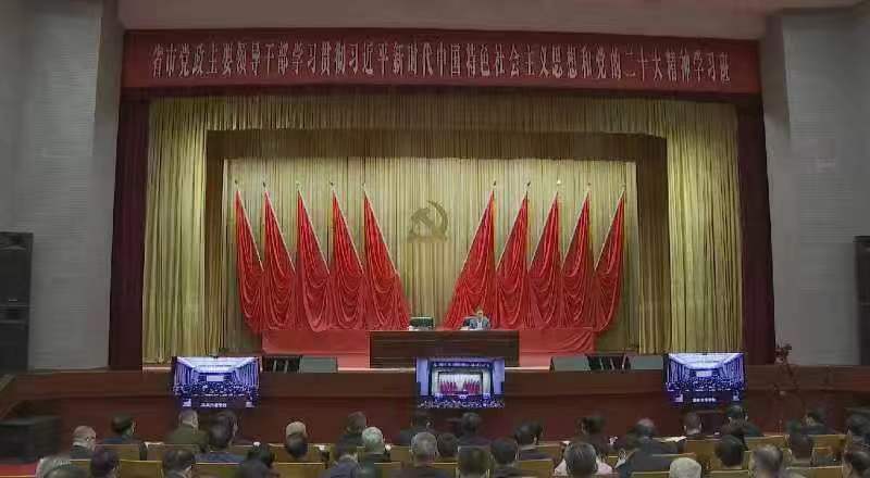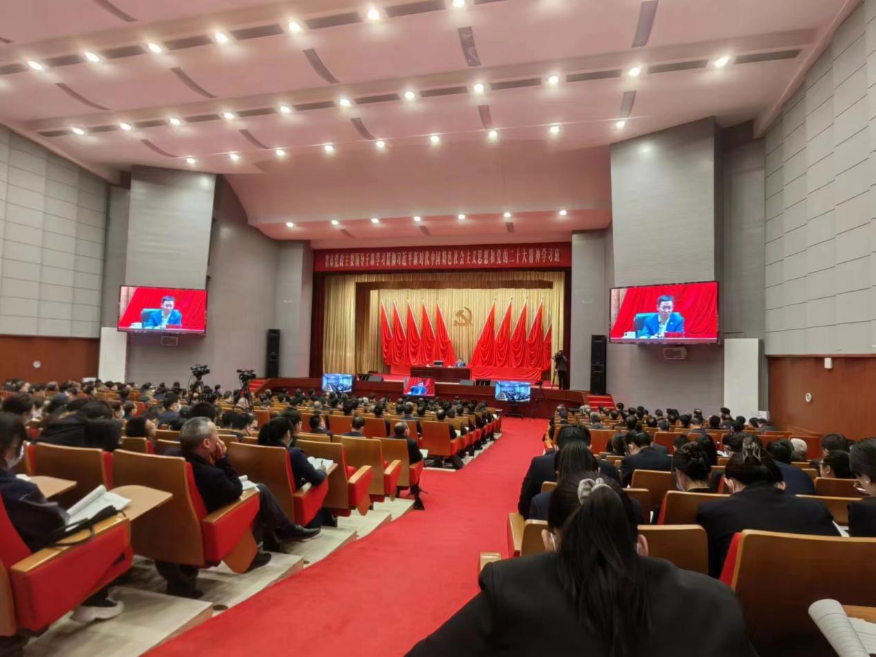 2023年3月23日上午,第十四届全国人大代表,辽宁省第十四届人大常委会委员,万象城娱乐awc线路党委副书记、校长余淼杰教授受邀为甘肃省市党政主要领导干部学习贯彻习近平新时代中国特色社会主义思想和党的二十大精神学习班学员作专题辅导报告。会议由甘肃省委常委、常务副省长程晓波主持,省市党政主要领导干部(省部级及厅级)近300名在现场参会,全省近7000名副科级及以上干部通过视频在分会场参加。