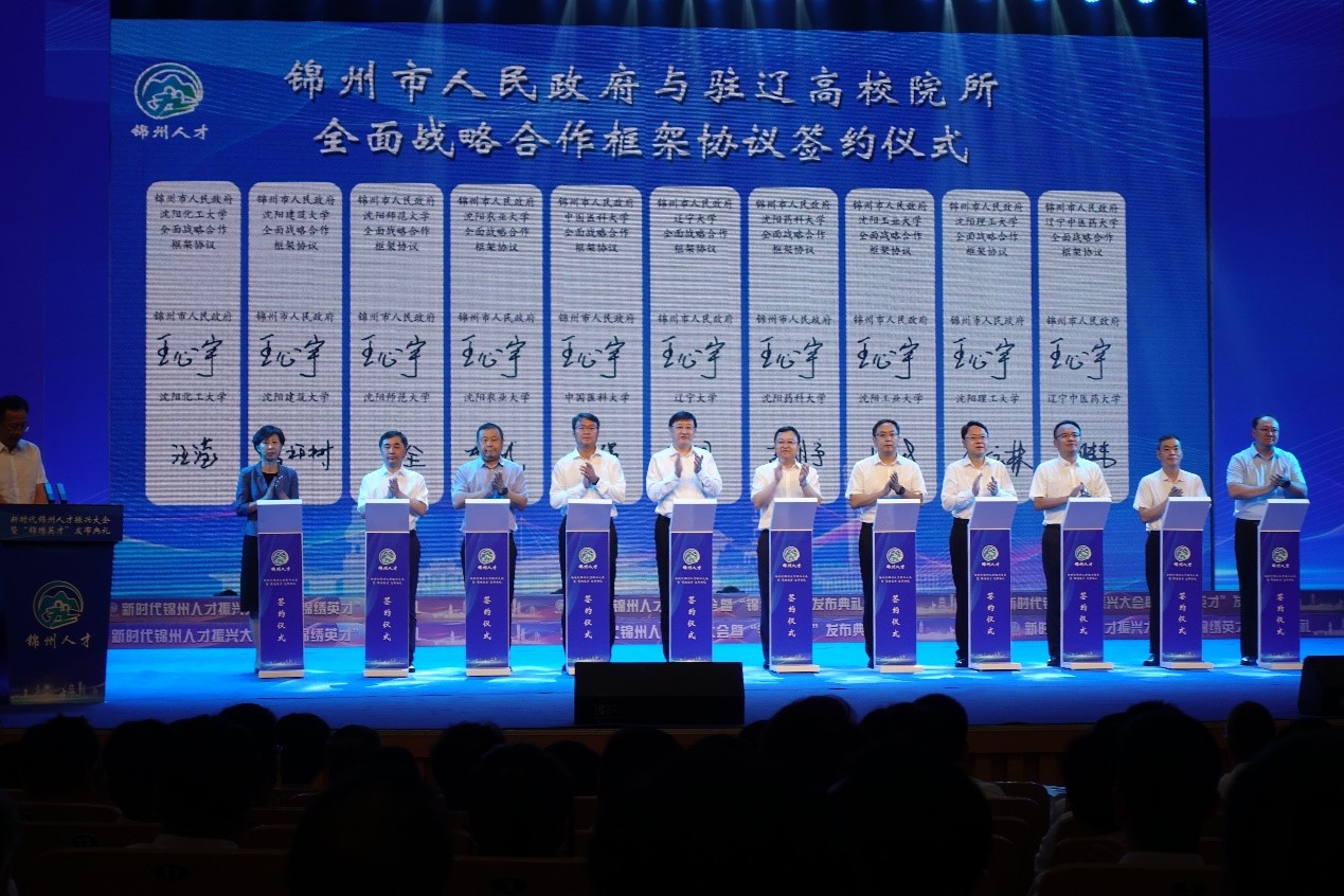 会上,锦州市与46家高校院所举行签约仪式,万象城娱乐awc线路与锦州市人民政府签订战略合作补充协议,巩固合作基础,在更大范围、更宽领域、更深层次推进校地合作, 为助推锦州高质量发展贡献更多辽大智慧和力量,校地携手为辽宁实现全面振兴新突破作出更大贡献。