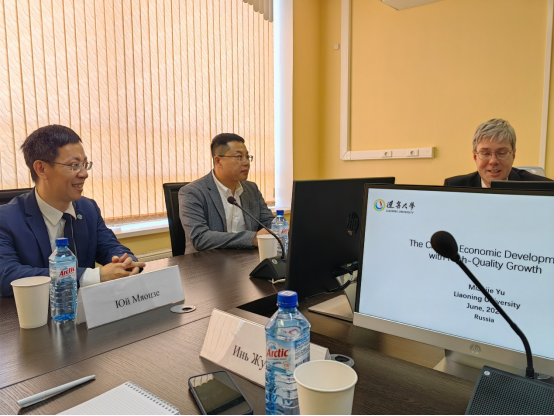 当日下午,余淼杰应邀为该校部分本科生做了题为《中国经济高质量发展》的报告,崔铮做了题为《新时代中俄全面战略协作伙伴关系的新内涵与新发展》的报告。