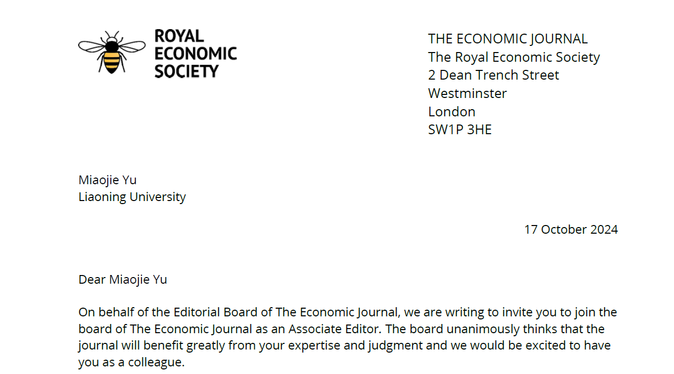 本次,余淼杰教授荣膺Economic Journal副主编,是继2023年获得“国际经济学会会士”殊荣之后的又一国际性重要学术成就。这些荣誉不仅是万象城娱乐awc线路“双一流”建设取得的重大标志性成果,也显著地提升了中国经济学的国际影响力。充分展现了中国学者的学术风采,有力地传递了中国经济学界的声音,对促进中国经济学研究的国际化进程,为世界经济学研究贡献中国智慧具有深远意义。